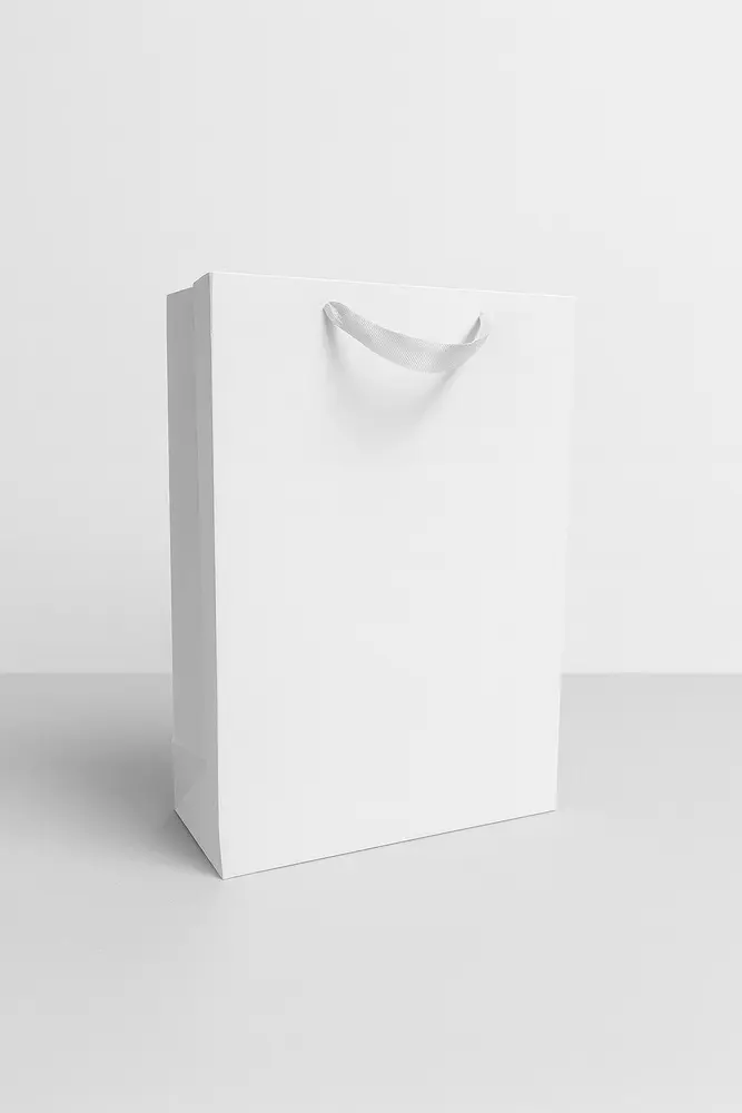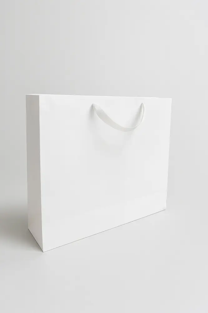 שקית קרטון לבנה +ידית ריבס (4 מידות לבחירה)