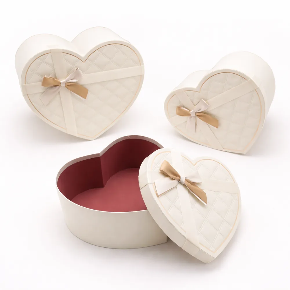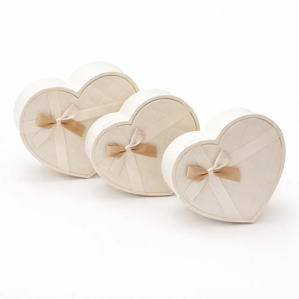 סט 3 קופסאות לב - שמנת פס זהב