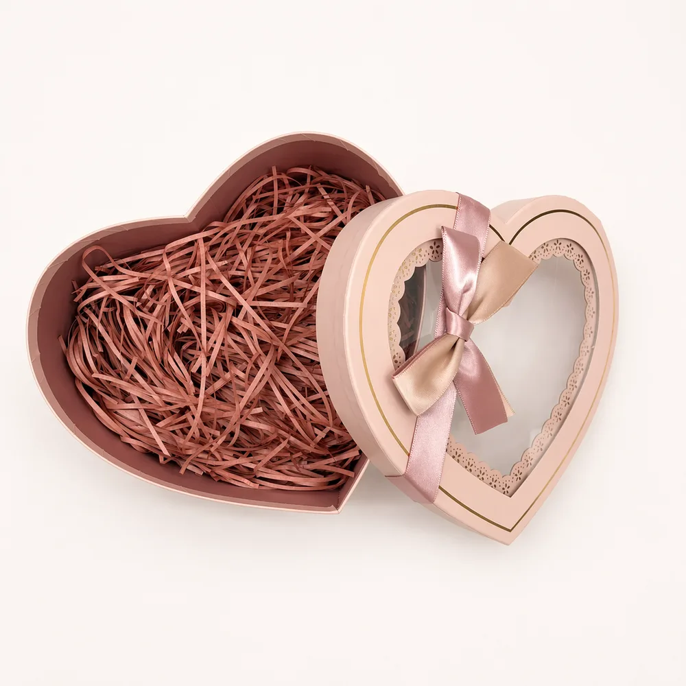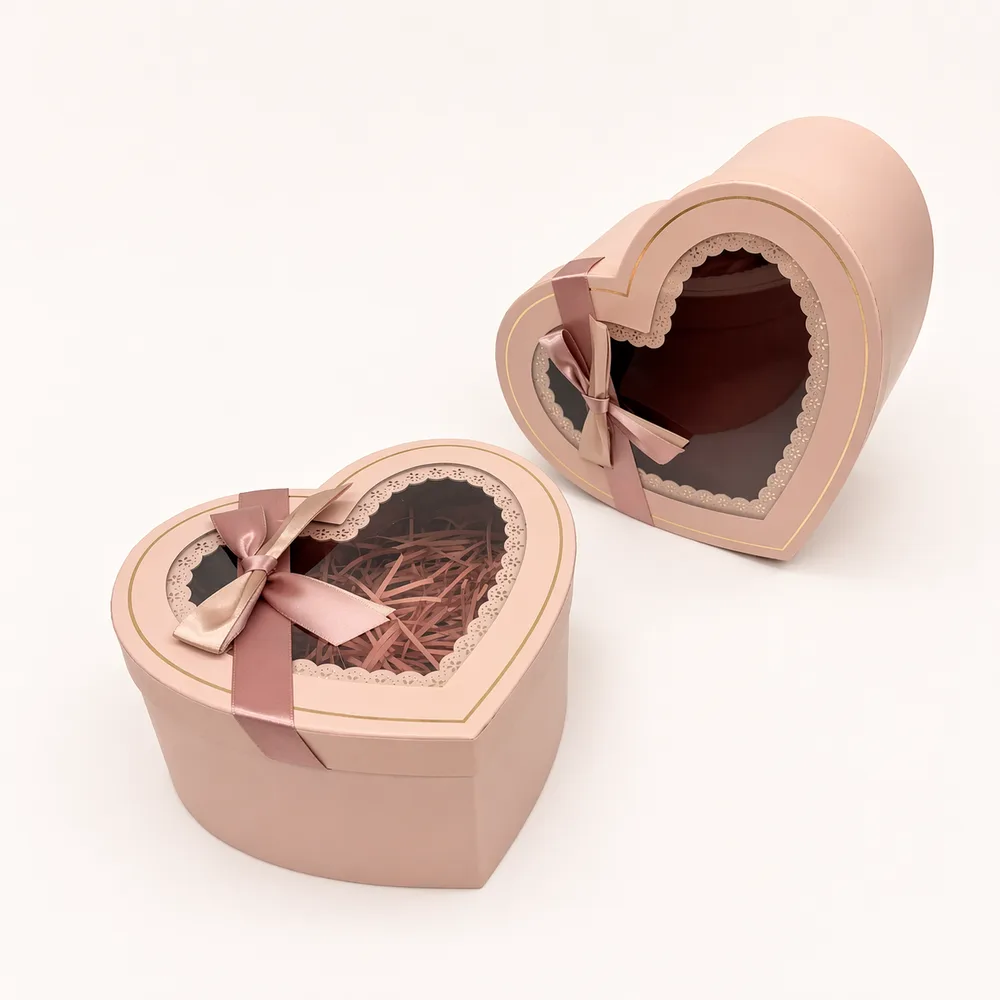 סט 3 קופסאות לב + חלון - רוז גולד פס זהב
