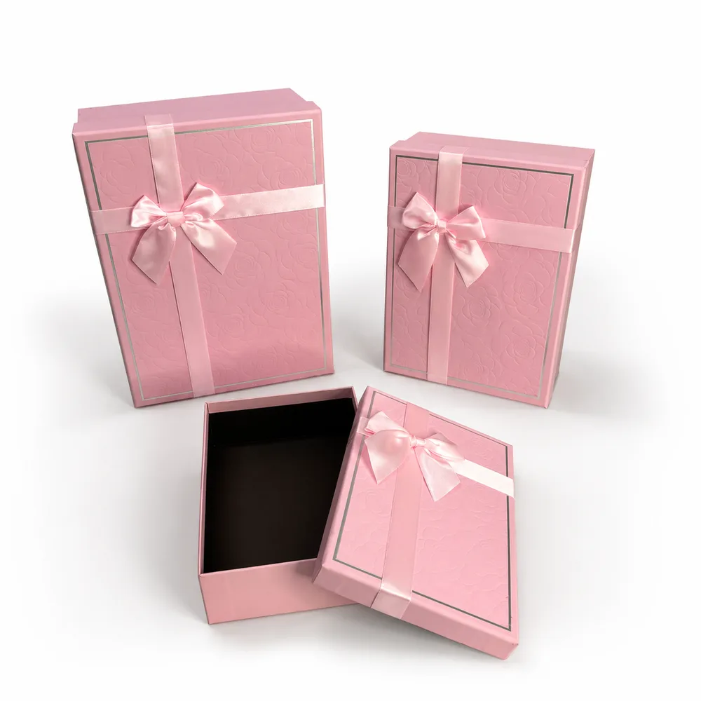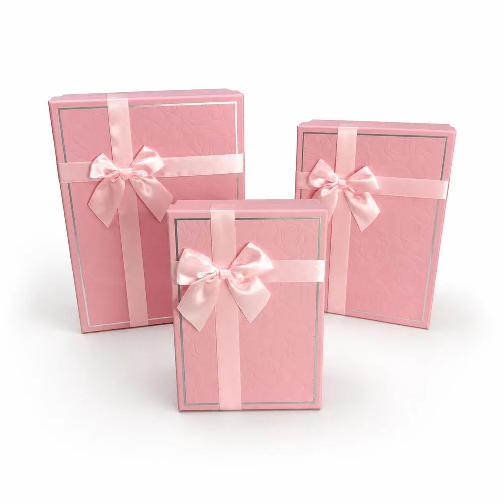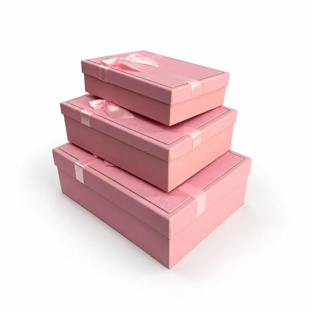 סט שלישיית מלבני עם פפיון - ורוד