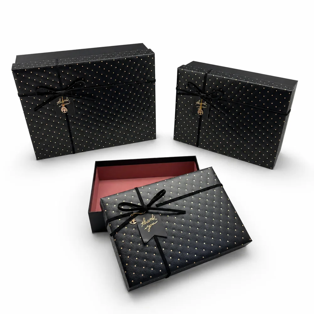 סט שלישיית קופסאות - שחור + נקודות זהב