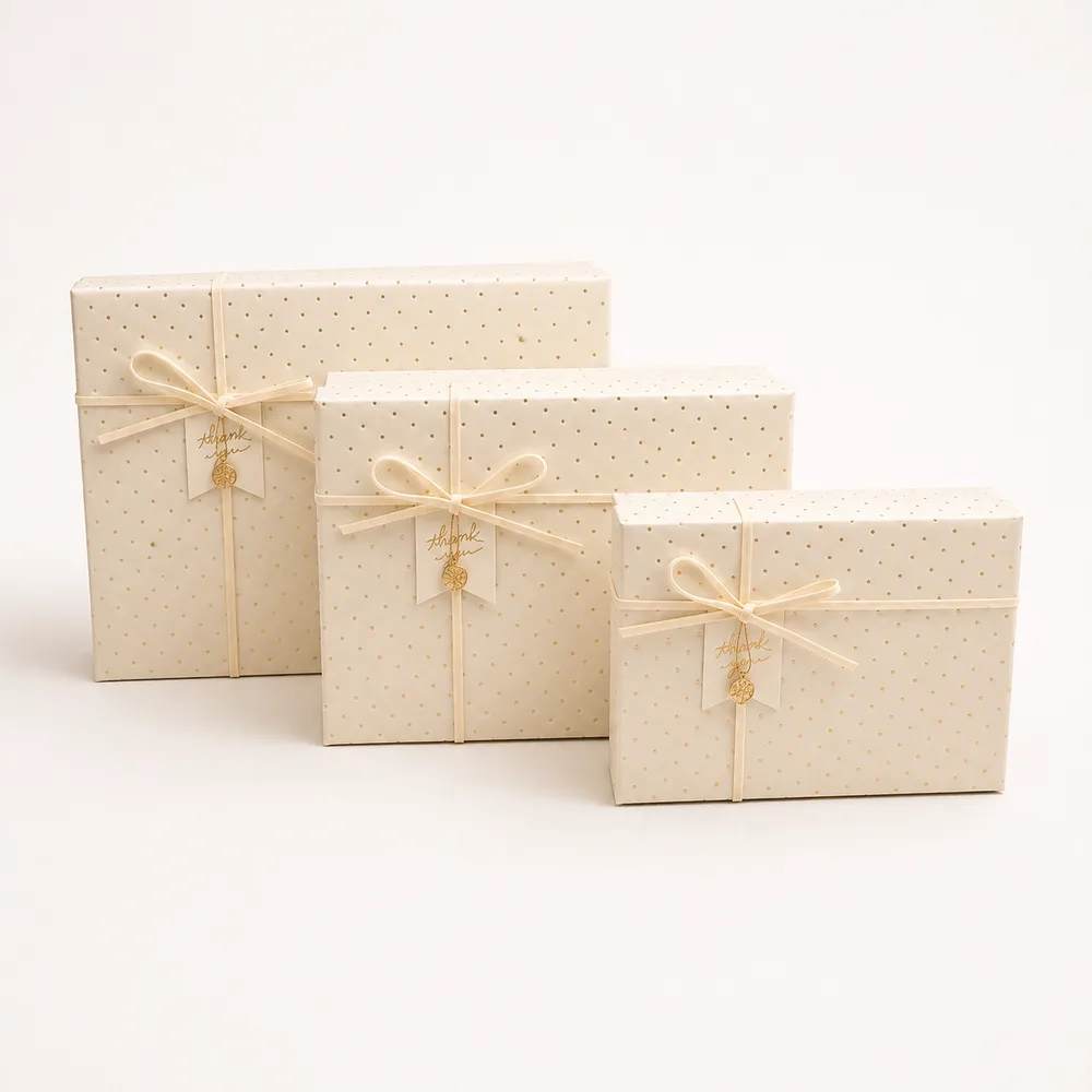 סט שלישיית קופסאות - שמנת + נקודות זהב