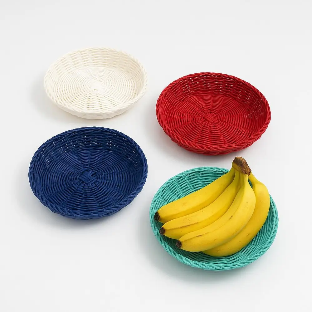 סלסלה עגולה פלסטיק דמוי ראטן- נמוכה (4 יח' בחבילה)