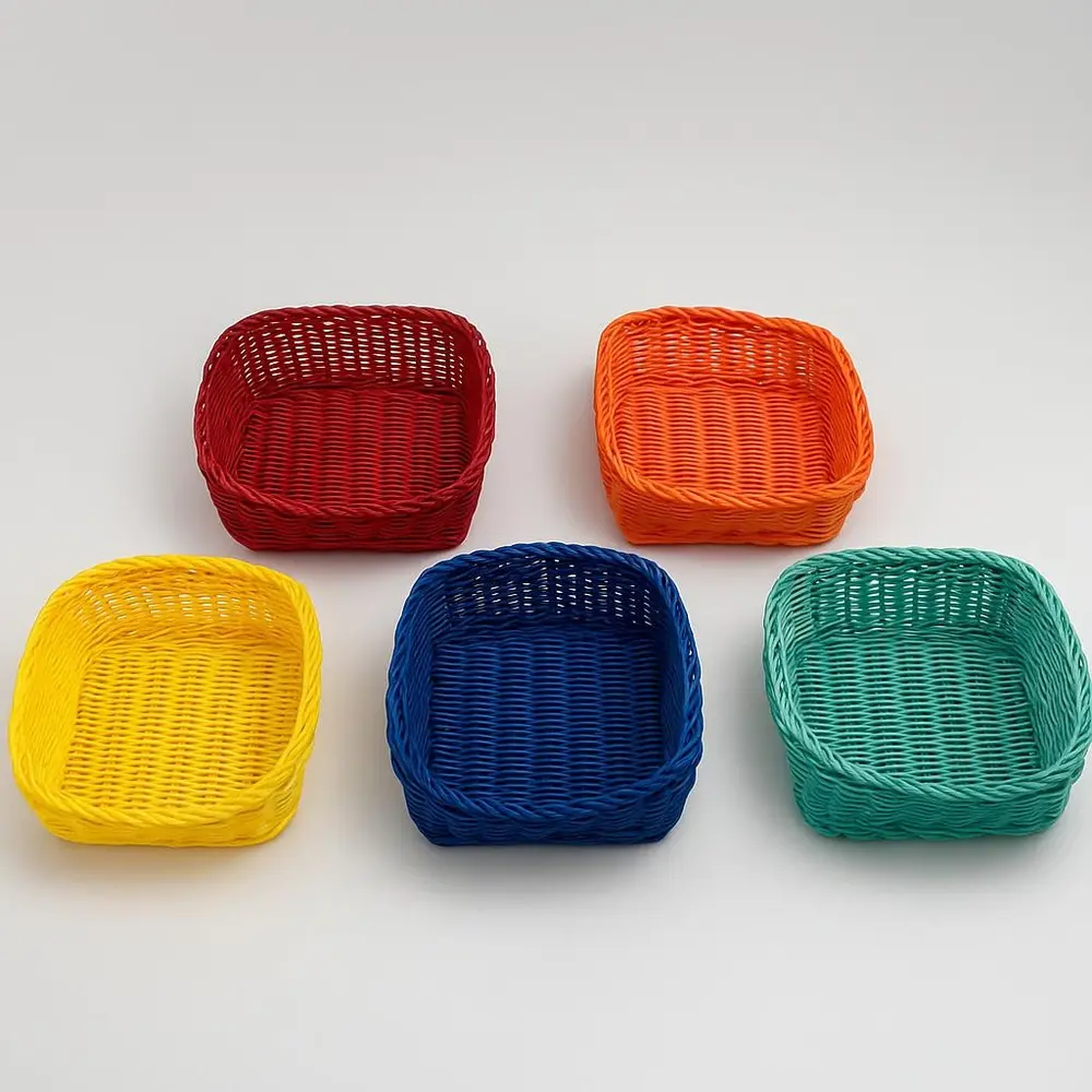 סלסלה מרובעת פלסטיק דמוי ראטן 15.5-15.5+7