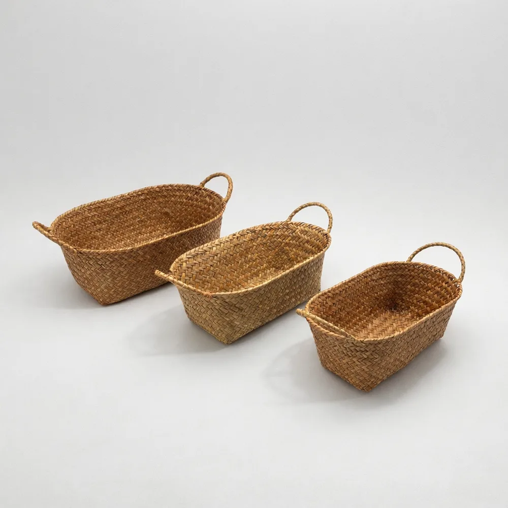 סלסלת דמוי ראטן אובאלית + ידית - 3 מידות לבחירה