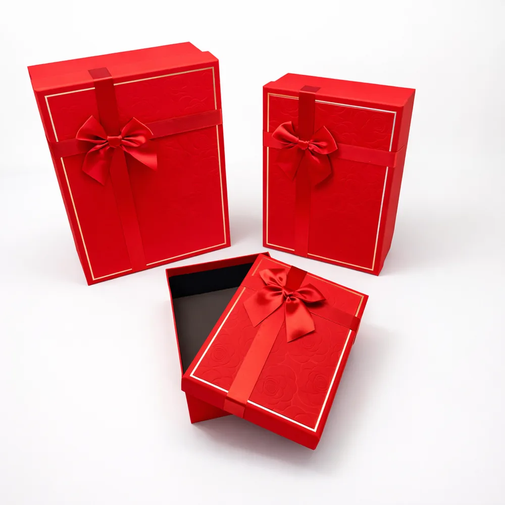 סט שלישיית מלבני עם פפיון - אדום