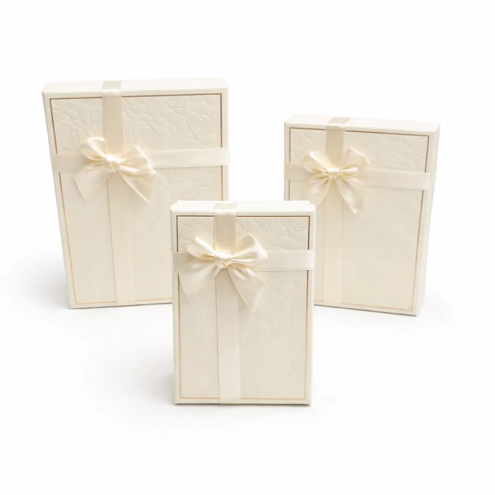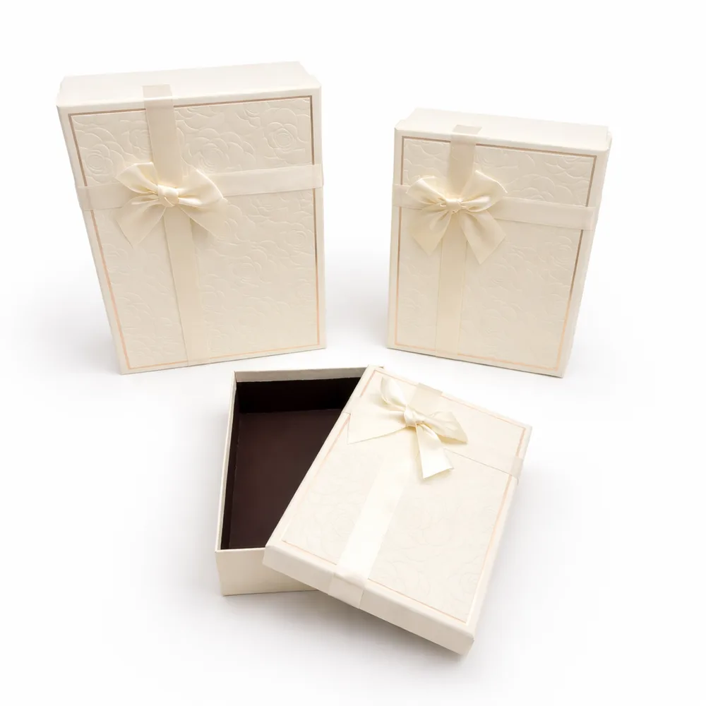 סט שלישיית מלבני עם פפיון - שמנת