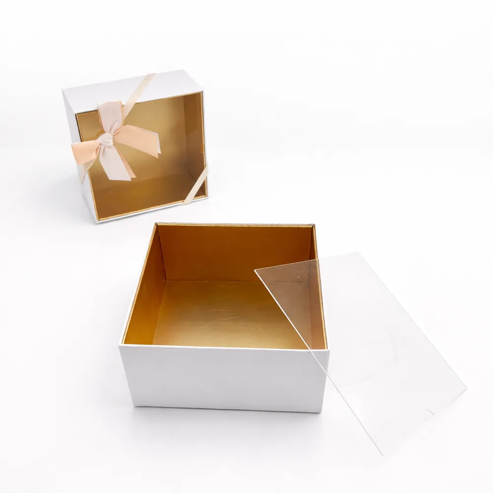 סט שלישיית קופסאות - לבן/זהב + מכסה שקוף