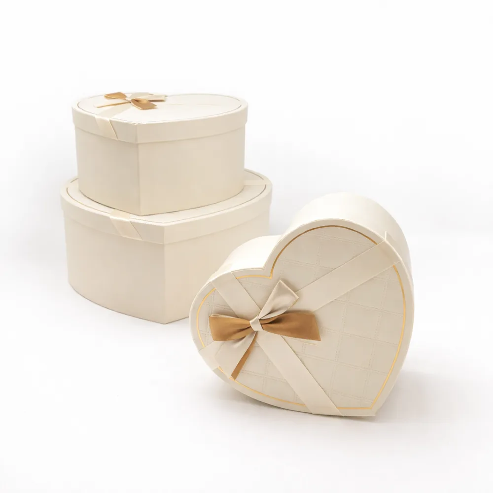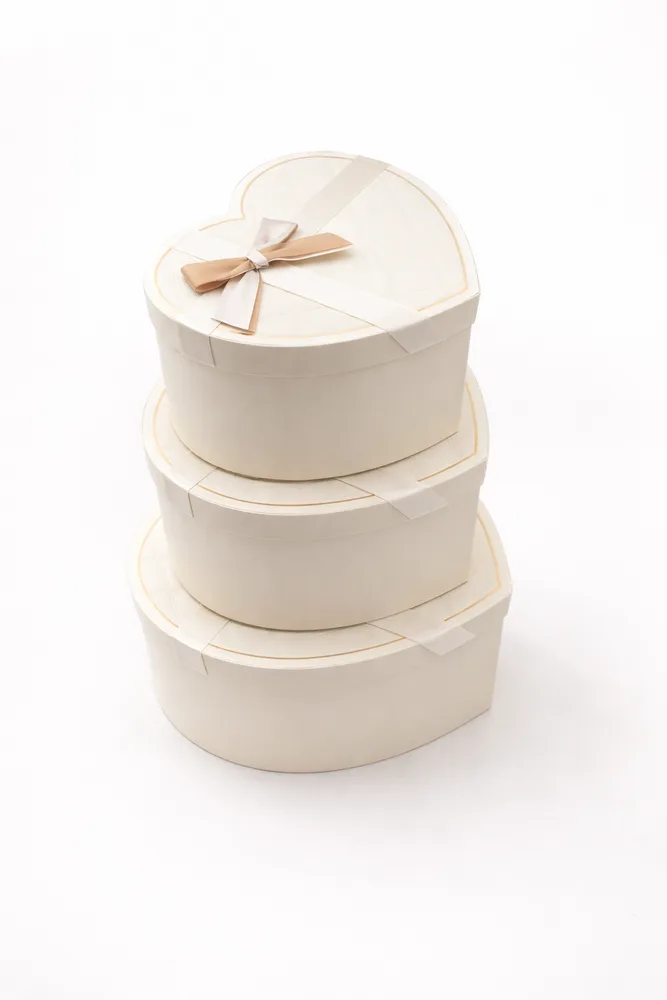 סט 3 קופסאות לב - שמנת פס זהב