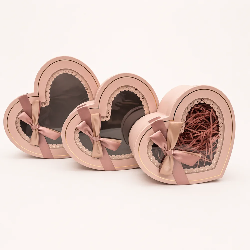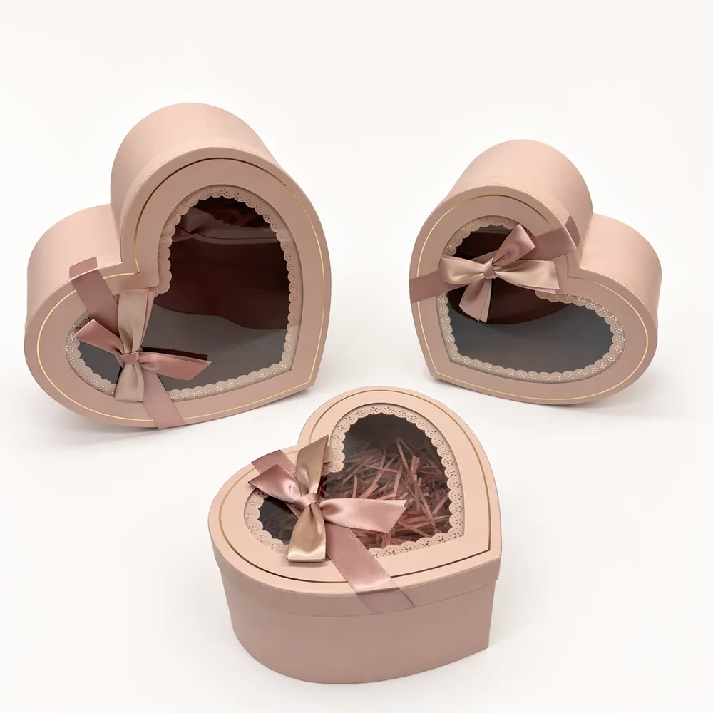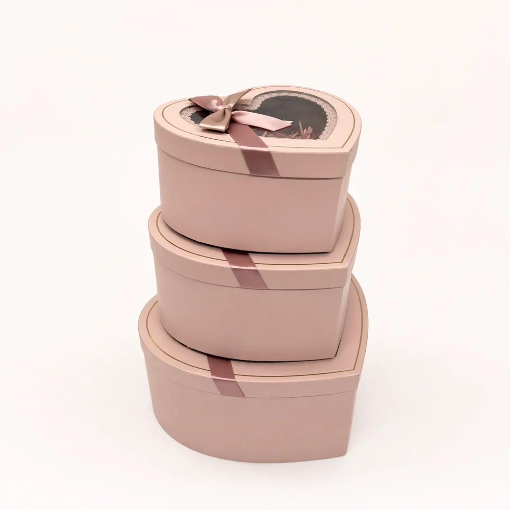 סט 3 קופסאות לב + חלון - רוז גולד פס זהב