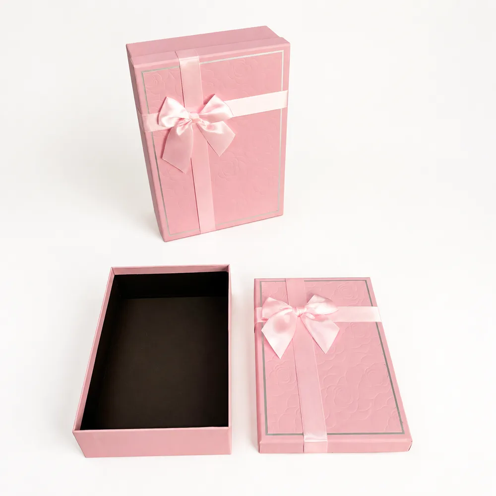 סט שלישיית מלבני עם פפיון - ורוד