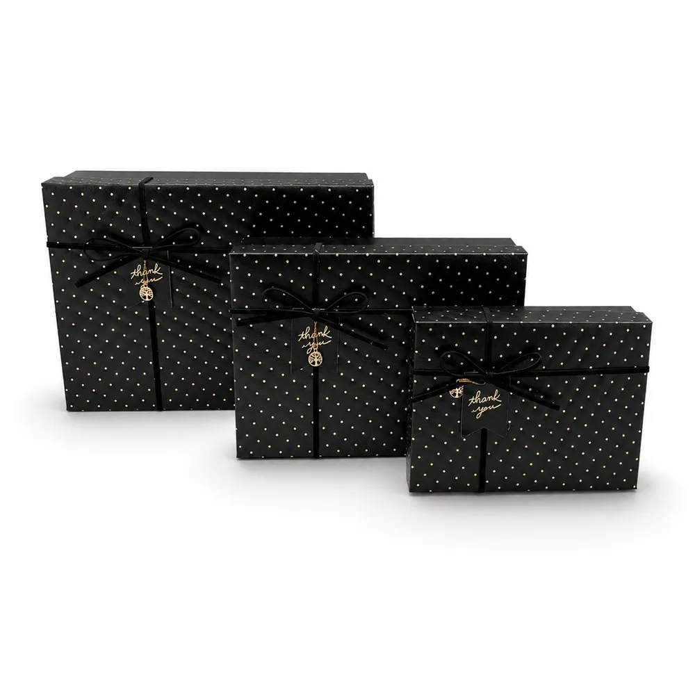 סט שלישיית קופסאות - שחור + נקודות זהב