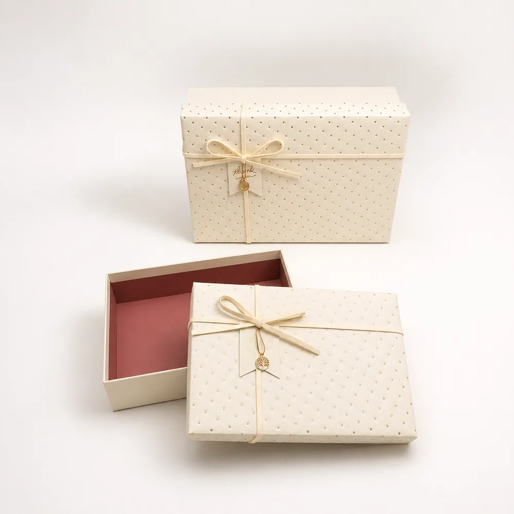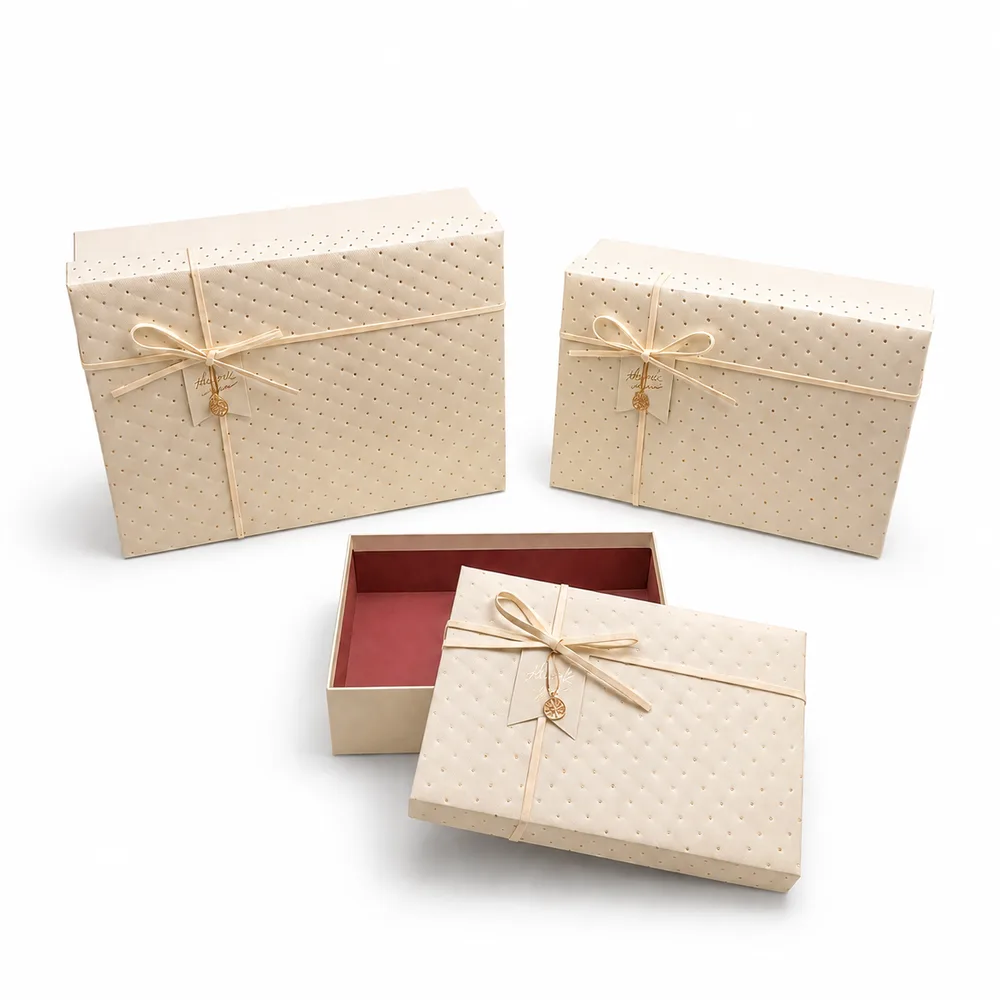 סט שלישיית קופסאות - שמנת + נקודות זהב
